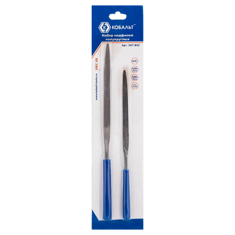Набор надфилей КОБАЛЬТ полукруглых, № 1, 140х3, 160х4 мм (2 шт.) блистер 1/10