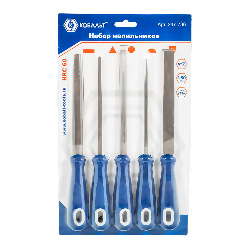 Набор напильников КОБАЛЬТ двухкомпонентная рукоятка, № 2, 150 мм (5 шт.) блистер