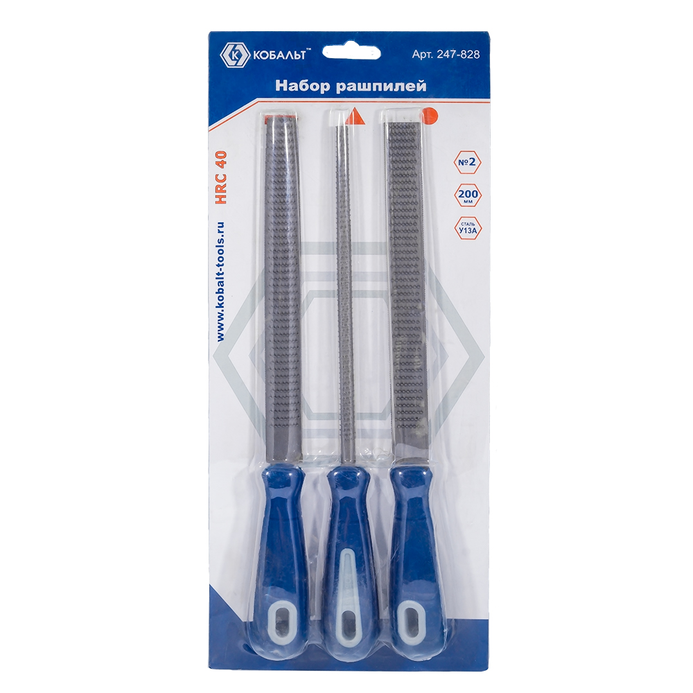 Набор рашпилей КОБАЛЬТ двухкомпонентная рукоятка, № 2, 200 мм (3 шт.) блистер 1/10