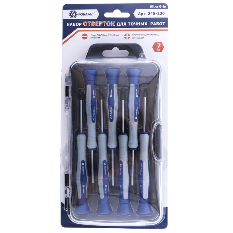 Набор отверток КОБАЛЬТ Ultra Grip для точных работ 50 мм, SL1.5;SL2.0;SL2.5;SL3.0; PH00;PH0;PH1.