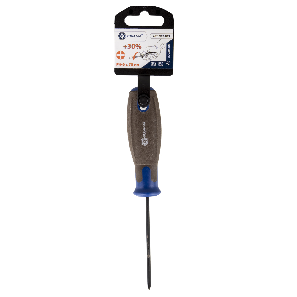 Отвертка POLYWOOD КОБАЛЬТ PH-0 х 75 мм CR-V, древесно-полимерная рукоятка (1 шт.) подвес