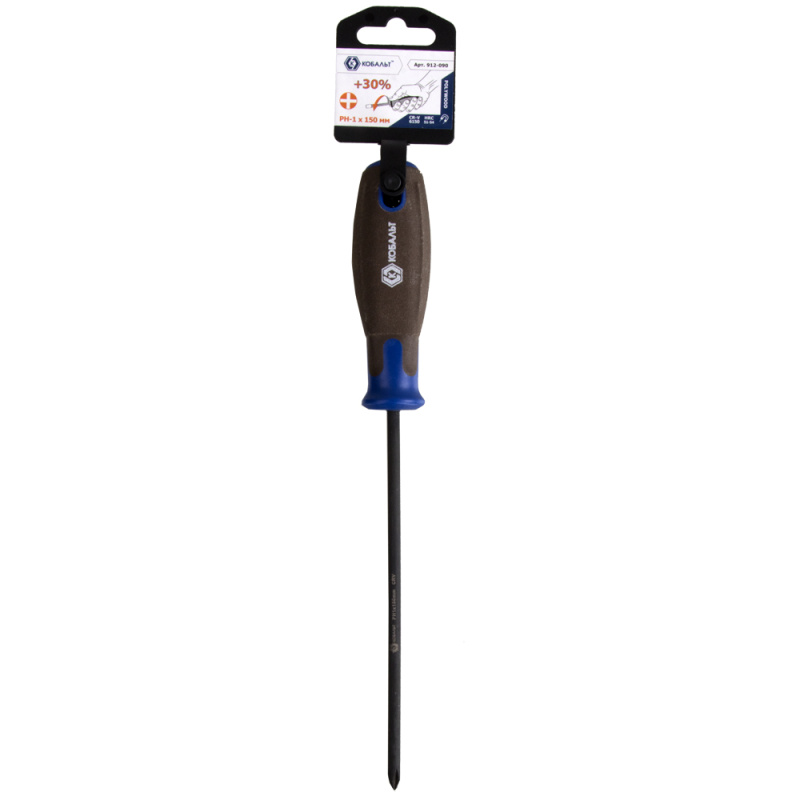 Отвертка POLYWOOD КОБАЛЬТ PH-1 х 150 мм CR-V, древесно-полимерная рукоятка (1 шт.) подвес