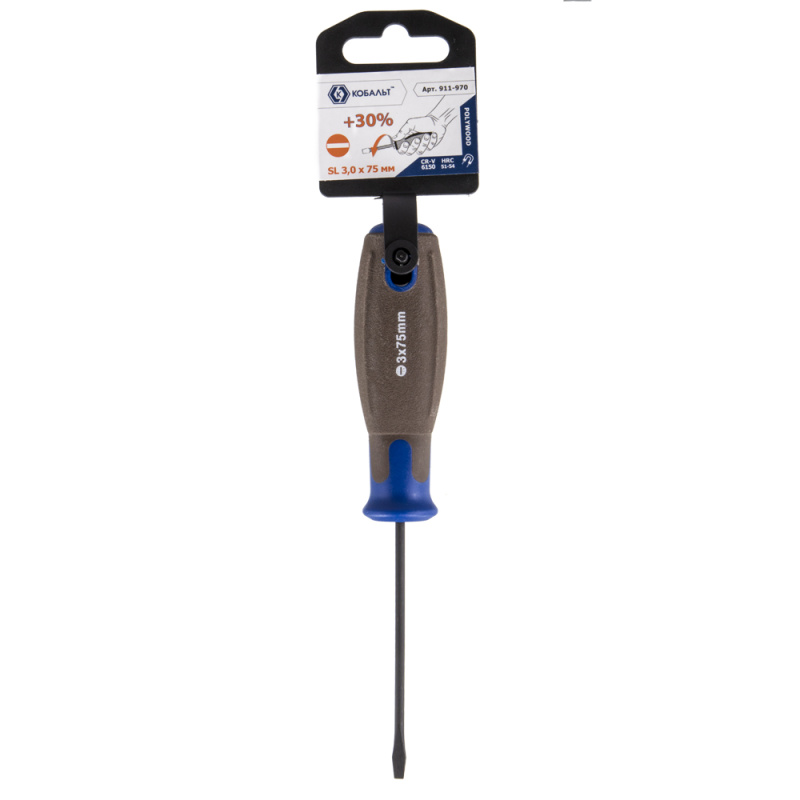 Отвертка POLYWOOD КОБАЛЬТ SL 3,0 х 75 мм CR-V, древесно-полимерная рукоятка (1 шт.) подвес