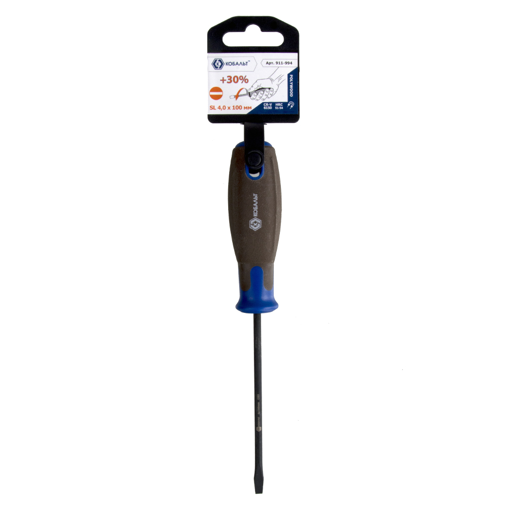 Отвертка POLYWOOD КОБАЛЬТ SL 4,0 х 100 мм CR-V, древесно-полимерная рукоятка (1 шт.) подвес
