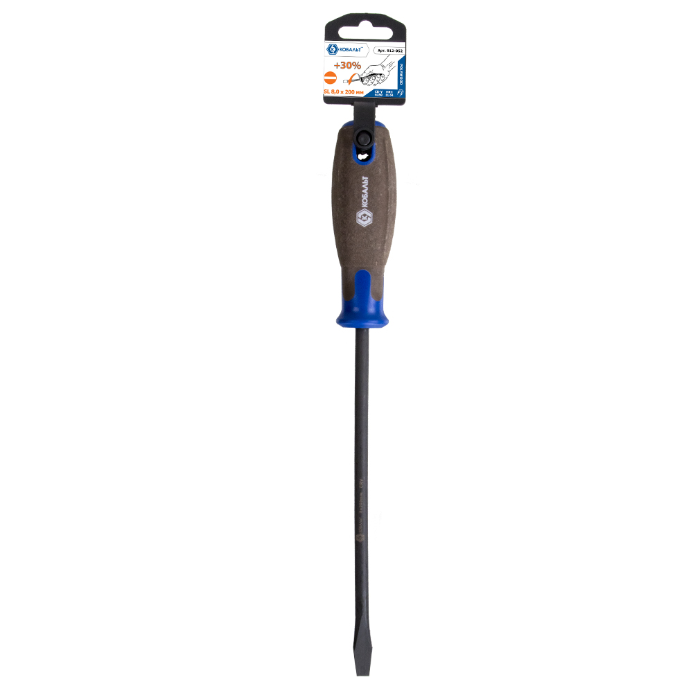 Отвертка POLYWOOD КОБАЛЬТ SL 8,0 х 200 мм CR-V, древесно-полимерная рукоятка (1 шт.) подвес