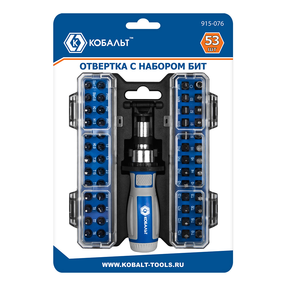 Отвертка рукоятка КОБАЛЬТ с набором бит, 53 пр., CR-V (25 бит, 26 бит для точн.работ + адаптер,)