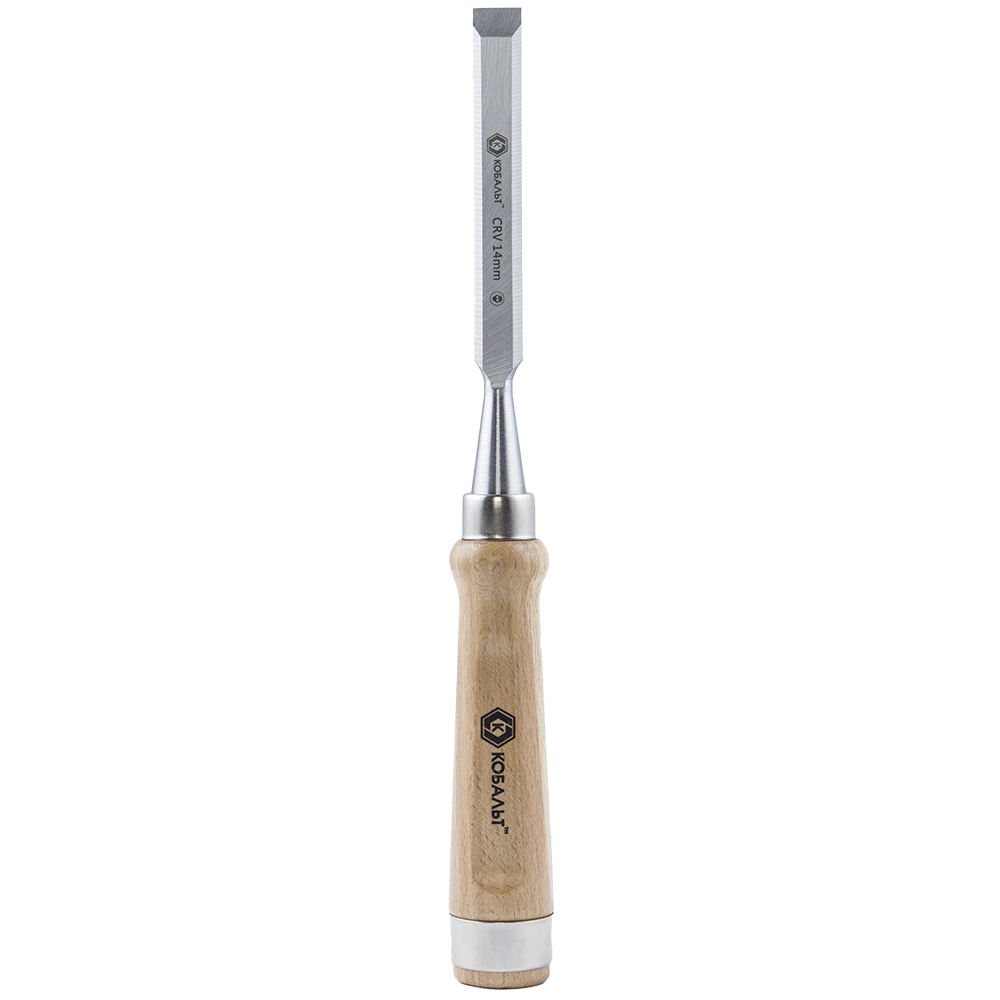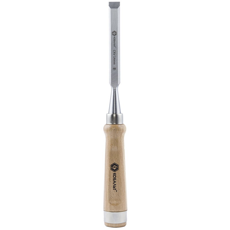 Стамеска плоская КОБАЛЬТ 14 х 140 мм, CR-V, деревянная рукоятка (1 шт.) подвес