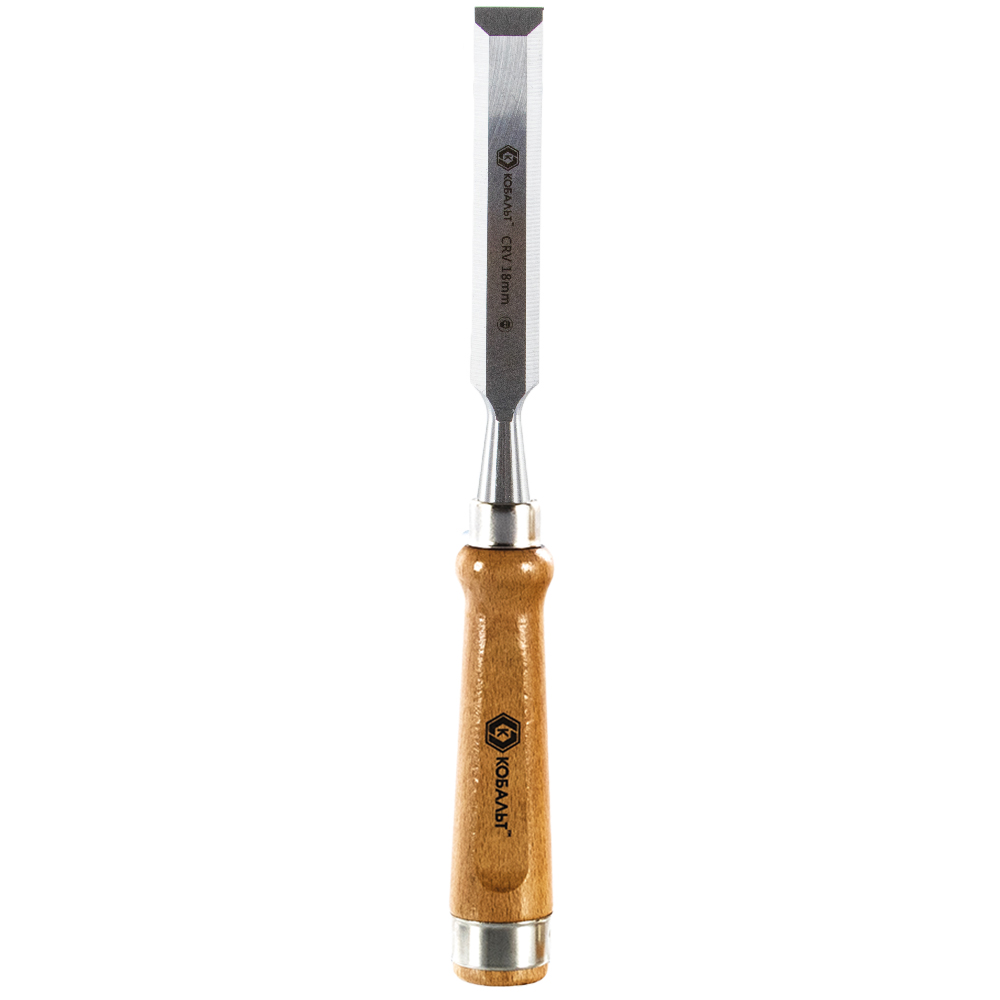 Стамеска плоская КОБАЛЬТ 18 х 140 мм, CR-V, деревянная рукоятка (1 шт.) подвес
