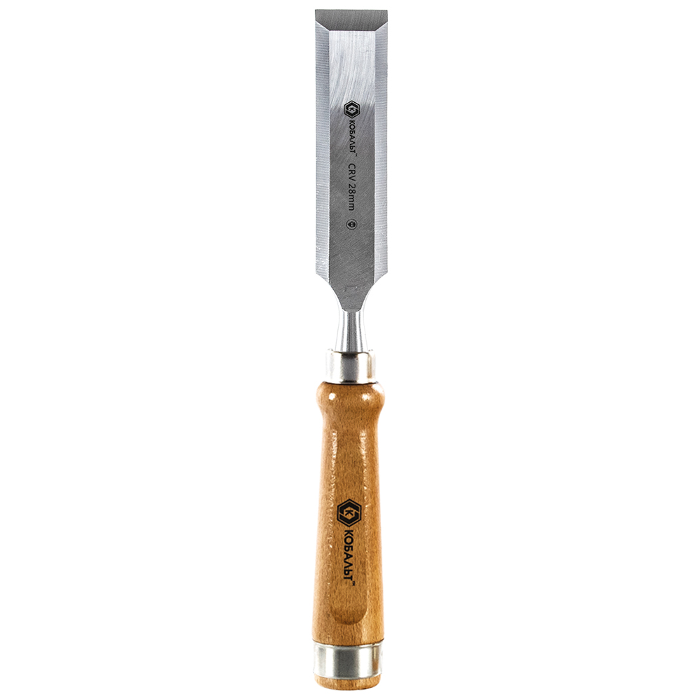 Стамеска плоская КОБАЛЬТ 28 х 140 мм, CR-V, деревянная рукоятка (1 шт.) подвес 1/6