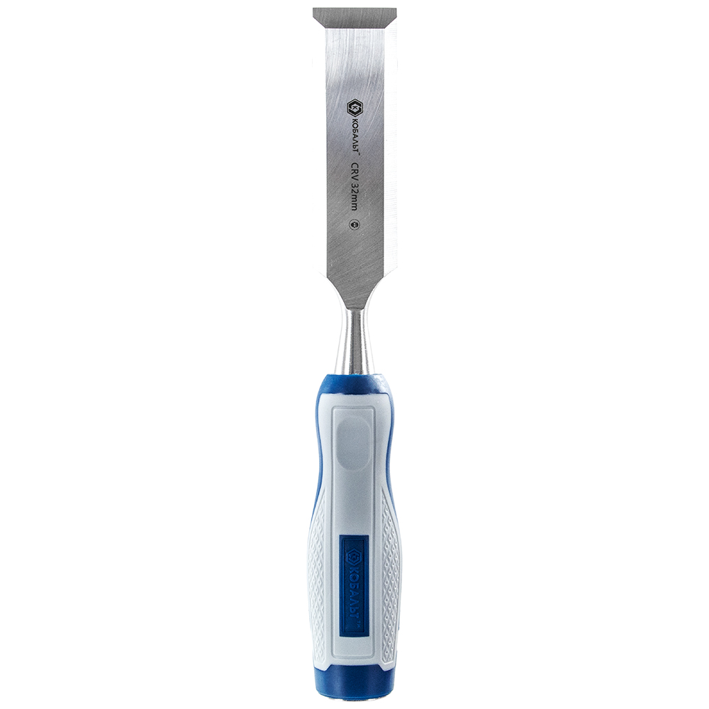 Стамеска плоская КОБАЛЬТ 32 х 140 мм, CR-V, двухкомпонентная рукоятка (1 шт.) блистер 1/6