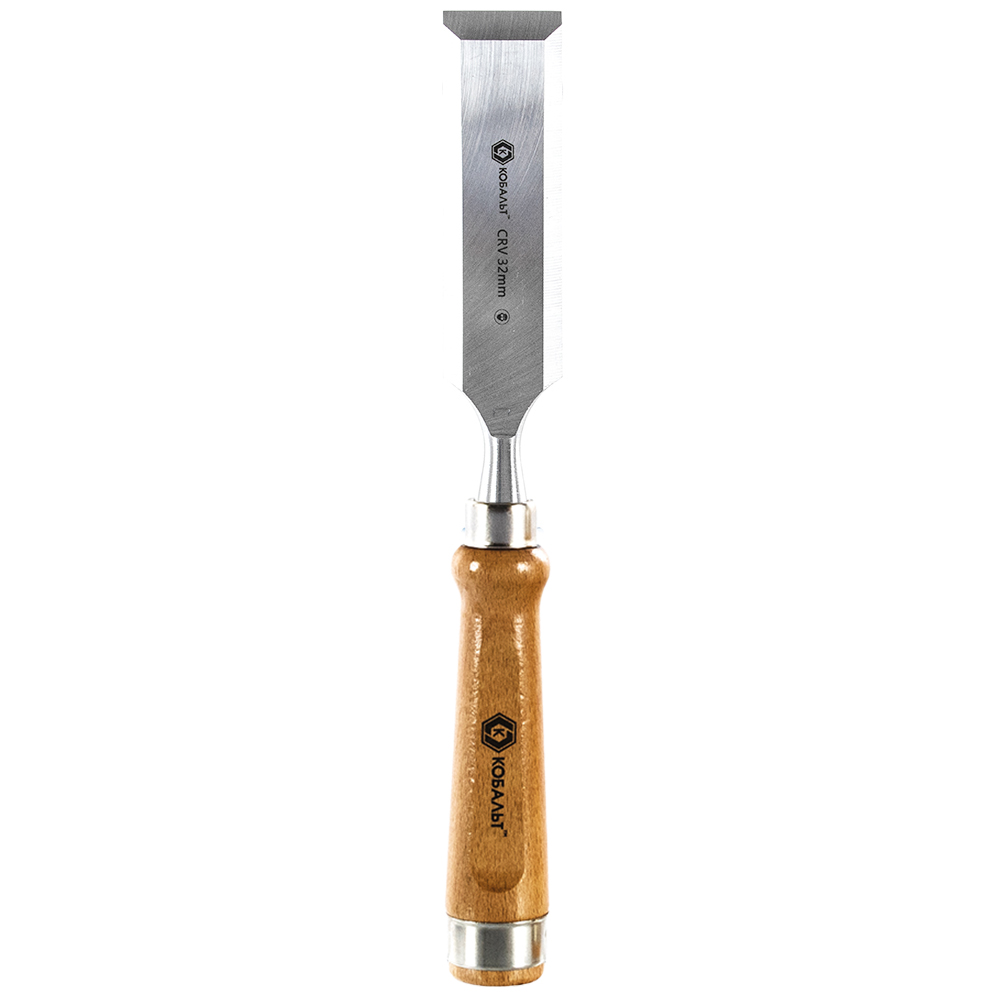Стамеска плоская КОБАЛЬТ 32 х 140 мм, CR-V, деревянная рукоятка (1 шт.) подвес 1/6
