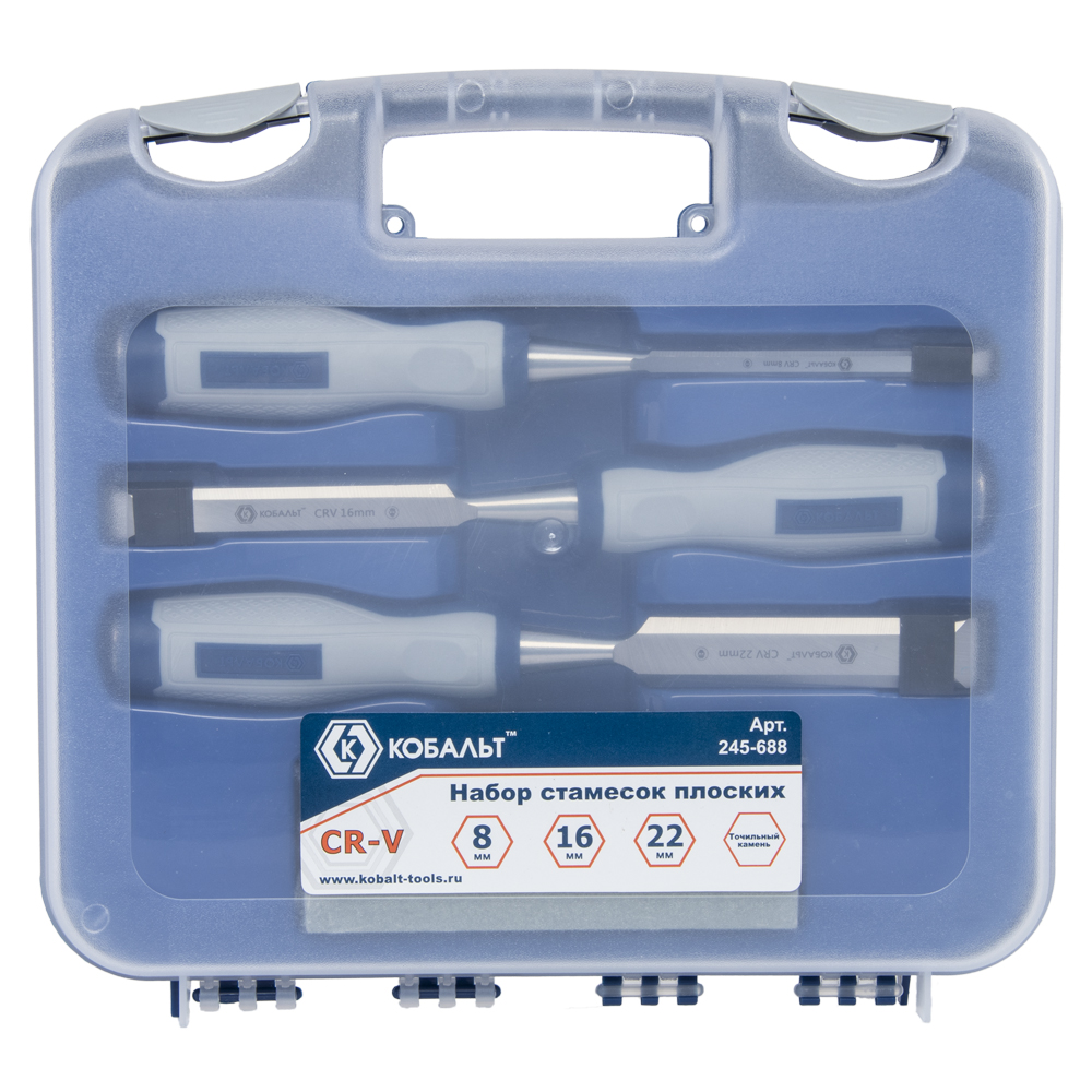 Набор стамесок КОБАЛЬТ плоских: 8, 16, 22 х 140 мм, CR-V, двухкомпонентная рукоятка т(3 шт.) блистер