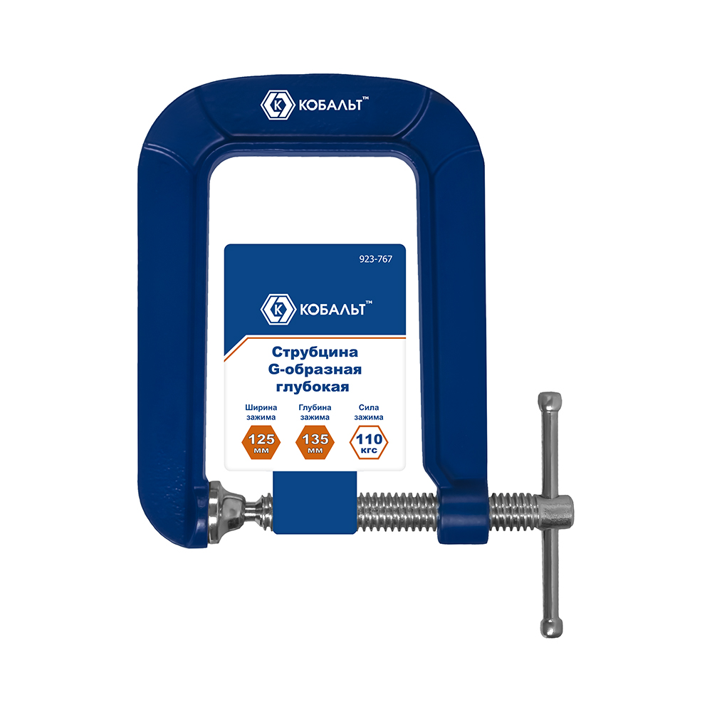 Струбцина G-образная КОБАЛЬТ ГЛУБОКАЯ, 125 мм, глубина зажима 135 мм