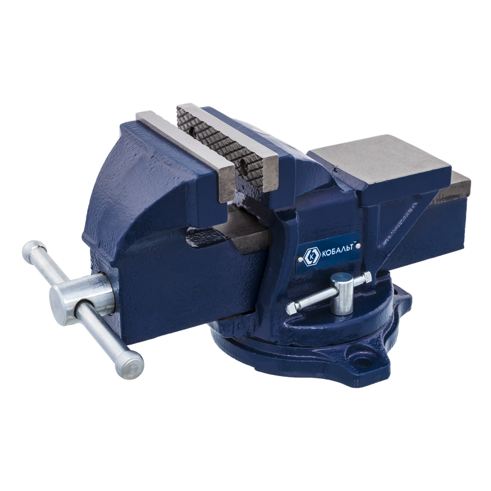 Тиски слесарные КОБАЛЬТ поворотнве , ширина губок 100мм, захват 100мм, 7 кг, наковальня, коробка