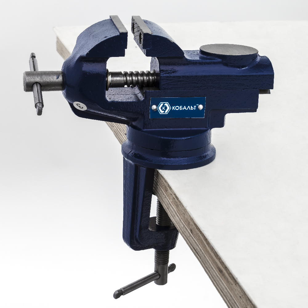 Тиски слесарные поворотные КОБАЛЬТ настольные, ширина губок 50 мм, захват 60 мм, 2.2 кг, наковальня