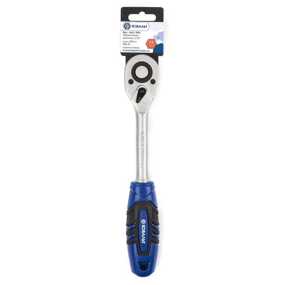Трещоточная рукоятка КОБАЛЬТ 1/2" 250 мм, 72 зуба флажковый переключатель (1 шт.) подвес
