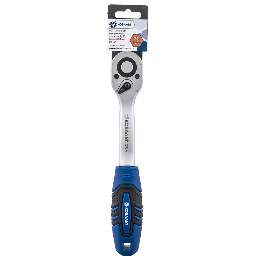 Трещоточная рукоятка КОБАЛЬТ 1/2" 250 мм, изогнутая рукоятка, 72 зубафлажковый переключатель (1 шт.)