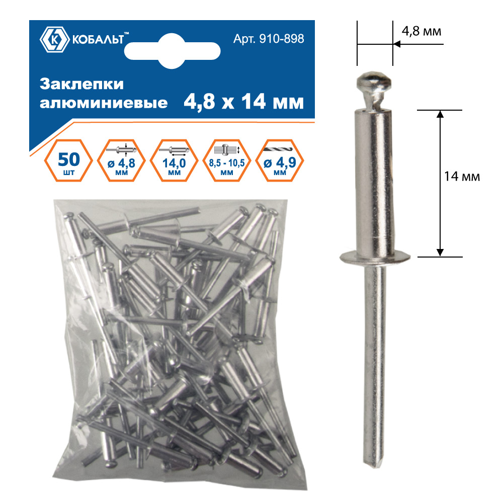 Заклепки КОБАЛЬТ алюминиевые, 4,8 х 14 мм (50 шт.) пакет