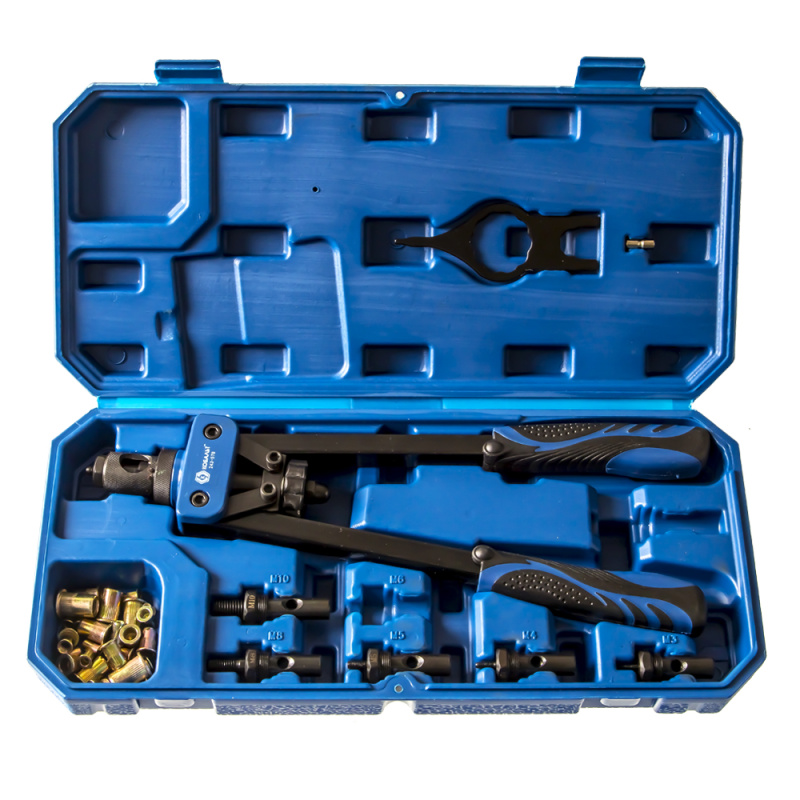 Заклепочник КОБАЛЬТ 360 мм, двуручный, резьбовые заклепки M3, M4, M5, M6, M8, M10, кейс