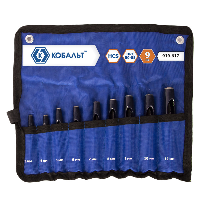 Набор просечек КОБАЛЬТ 3,4,5,6,7,8,9,10,12 мм (9 шт.) чехол