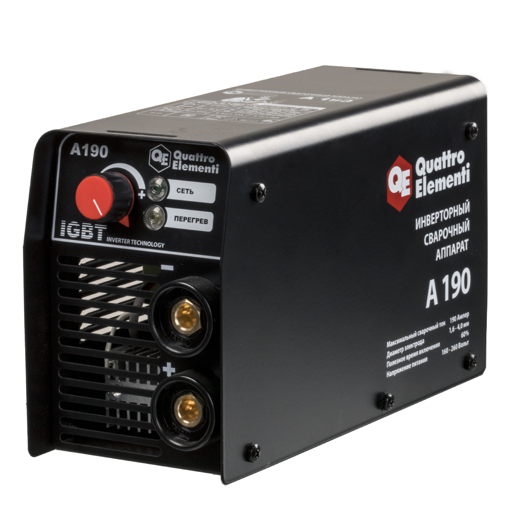 Аппарат электродной сварки, инвертор QUATTRO ELEMENTI A 190 (190 А, ПВ 60%, до 4.0 мм, 3.6 кг, 160-2
